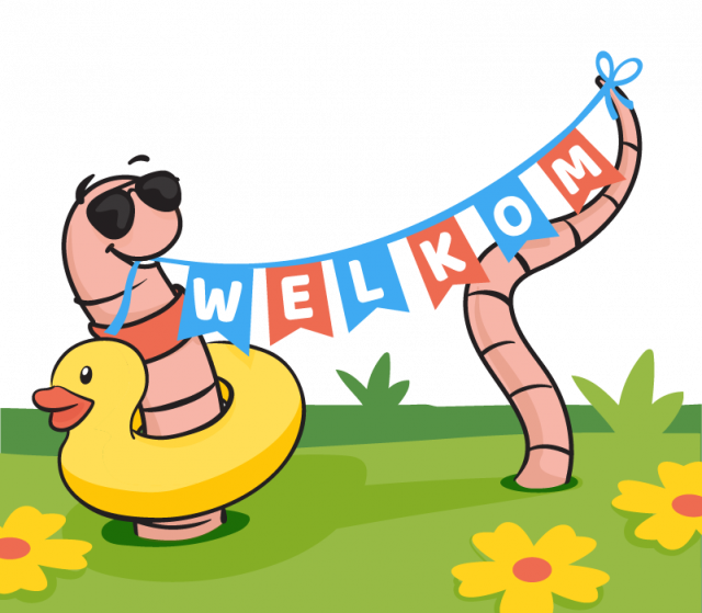 Ik ben Arie Aardworm en ik woon onder de grond. Maar als het regent kom ik graag even naar boven, en steek ik mijn neus boven de aarde uit.